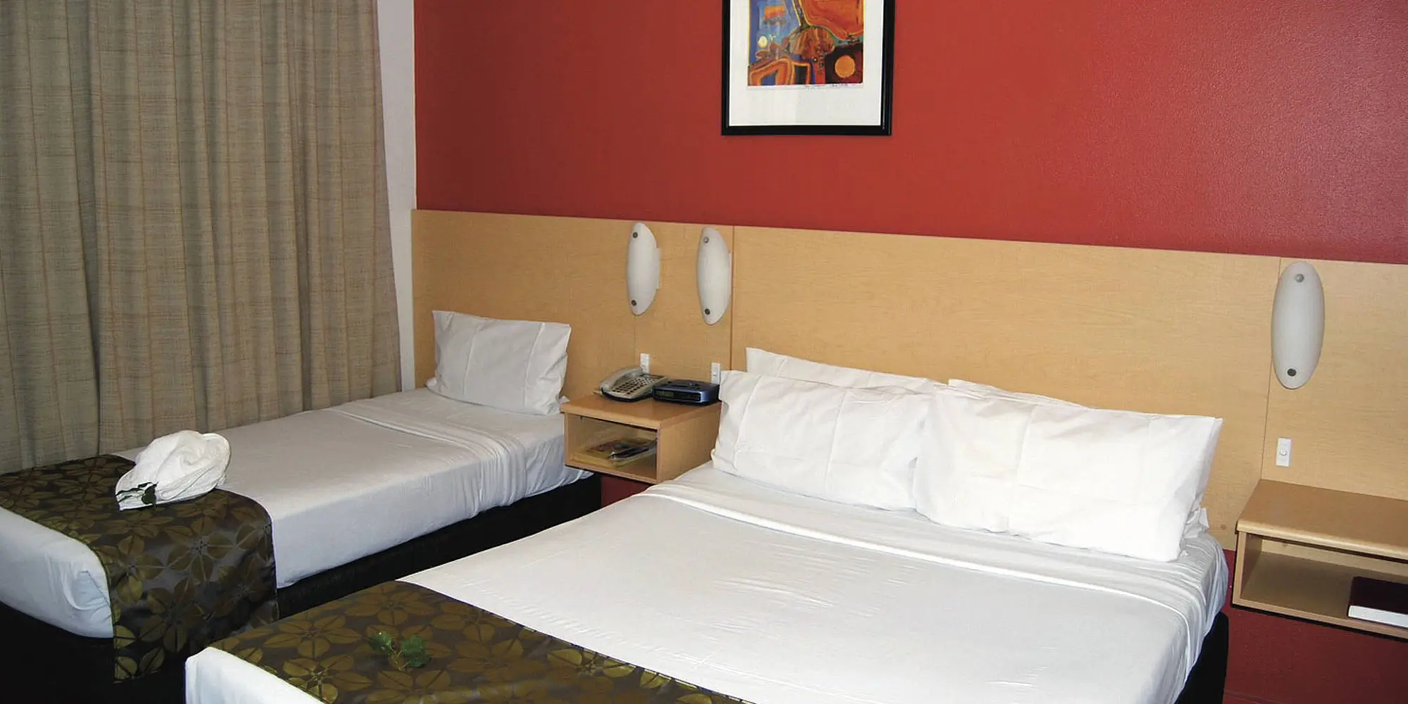 109 kamers met een tweepersoonsbed en een eenpersoonsbed, douche/wc, haardroger, airco, koelkast, koffie-/theefaciliteiten en tv. Deluxe kamers zijn ruimer (ca. 26 m²) en moderner ingericht.