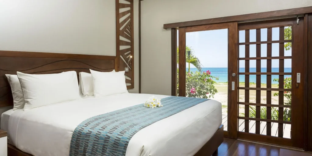 vrijstaande en ruime duplex bungalows met zonnedek, Fijisch ingericht, met airco, koffie-/theefaciliteiten, koelkast, kluisje, telefoon, tv. De Deluxe Beach Bungalows zijn rustiger en iets dichter aan het strand gelegen.