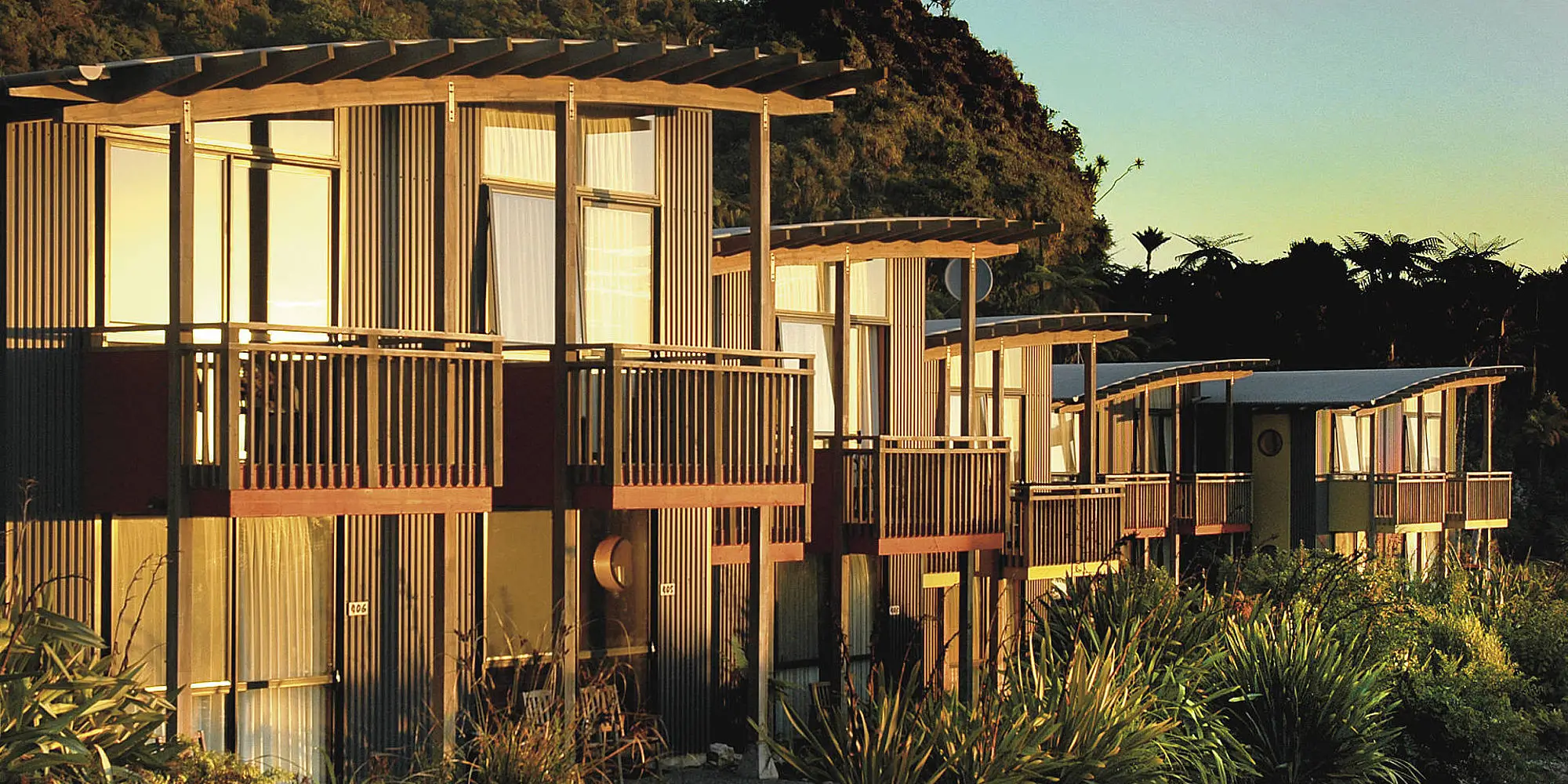 Dit milieuvriendelijke resort is harmonieus geïntegreerd in het westelijke kustlandschap met zijn subtropische vegetatie (nikau-palmen). Het resort ligt nabij de beroemde Pancake Rocks. (ID: 10853)