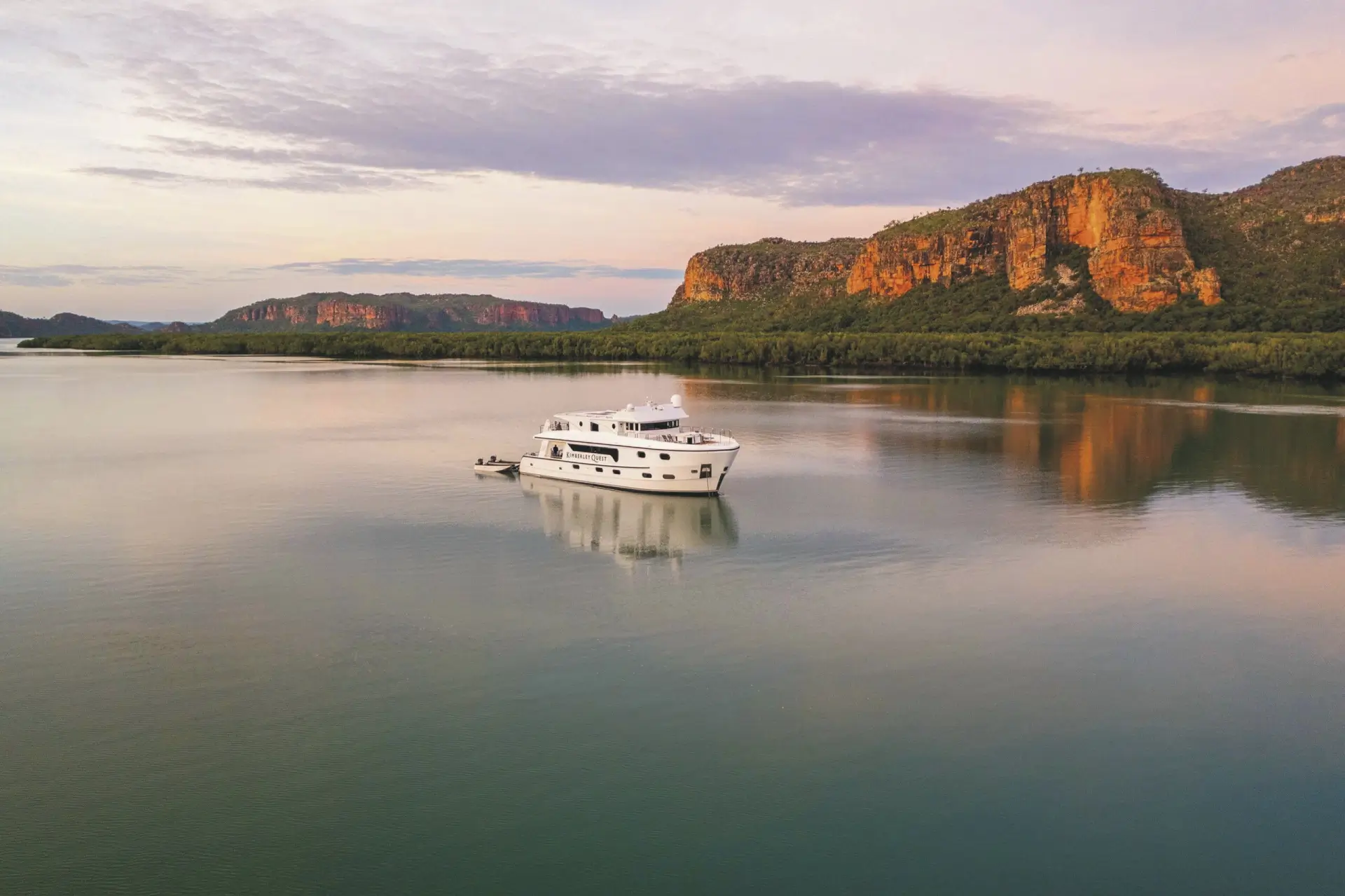 Ontdek de zuidelijke Kimberley regio vanaf het water, verken de fjorden en ervaar adembenemende landschappen buiten de gebaande paden. De Kimberley regio kent grote getijden die de route beïnvloeden. U bezoekt sowieso spectaculaire bezienswaardigheden, komt op ongerepte locaties met de luxueuze Quest Express speedboot en tijdens enkele excursies aan wal, en krijgt de mogelijkheid om te leren vissen.