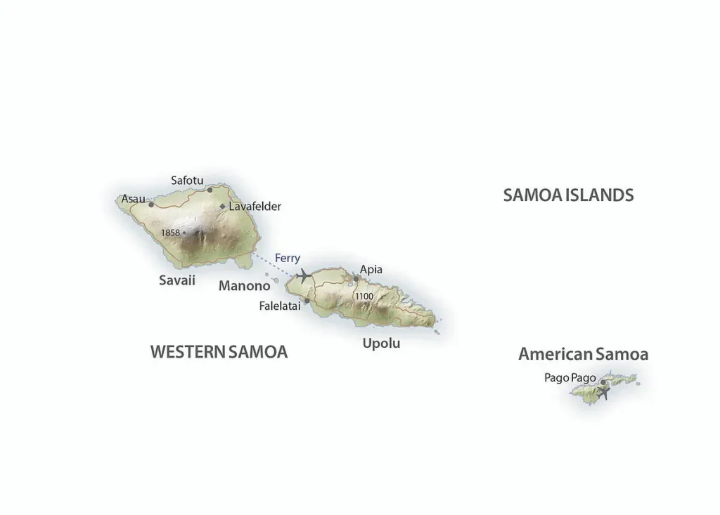 Upolu, het hoofdeiland van Samoa, en Savai’i, het grootste eiland van Samoa, maken beide deel uit van het westelijke gedeelte van de Samoa-Eilanden. Amerikaans-Samoa vormt het oostelijke deel van de Samoa-Eilanden.