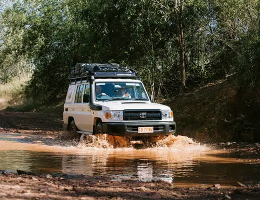 Voor deze serieuze “4wd Tracks” adviseren we u een zgn. “longwheelbase” terreinauto (zoals de Toyota Landcruiser). Bovendien vereist het berijden van deze “Tracks” een goede voorbereiding. U dient rekening te houden met het seizoen (regen) en het beperkte aanbod van benzine/diesel langs deze routes. U dient met name zeer voorzichtig te zijn bij het oversteken van riviertjes. In bepaalde situaties en op een aantal trajecten is schadedekking van de auto’s zeer beperkt (bijv. het traject naar Jim Jim en Twin Falls in het Kakadu National Park). Laat u zich vooraf goed informeren over de te volgen route.