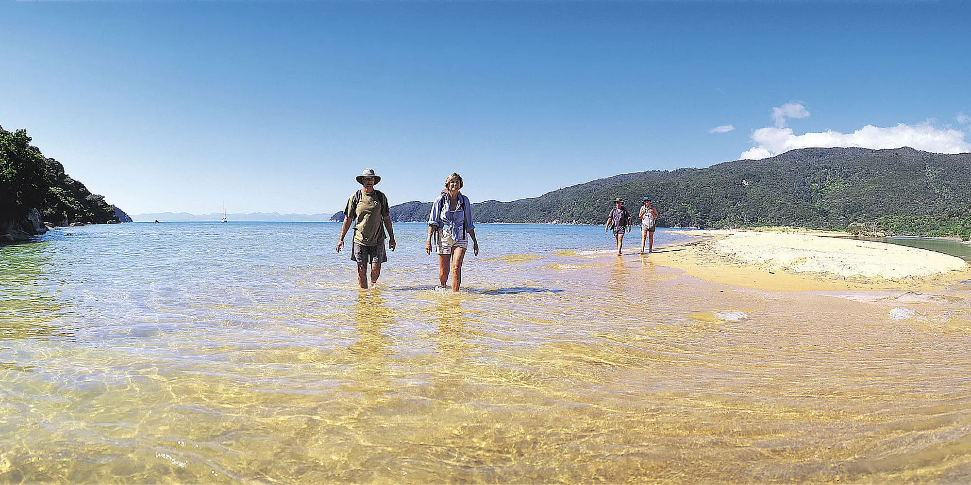 Om 09.30 uur start u met een boottocht naar Medlands Bay in Bark Bay. Van hieruit wandelt u richting de gouden zandstranden van Anchorage. Op uw pad kruist u ook de spectaculaire hangbrug over Falls River en kunt u tevens een omweg maken naar Cleopatra’s Pool. Van Anchorage kunt u per boot terug naar Kaiteriteri om 15.25 uur ofwel om 17.20 uur. Aankomst om 16.10 of 18.00 uur.